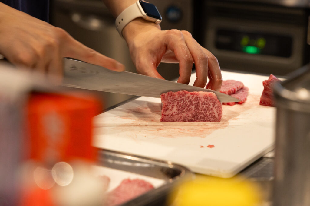 こだわり和牛のとろける食感。まずはひとくち、食べてごらん。